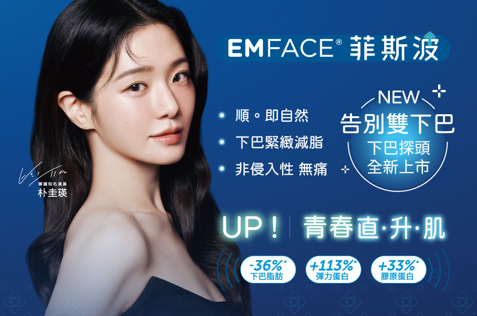 • 另外,更推出全新雙下巴緊緻拉提探頭,結合相同的專利「高強度電場技術HIFESTM」及「Sync RF 同步煥顏電波」尖端科技,作用於二腹肌(Digastric muscle),可同時消滅脂肪細胞並同時賦予鬆弛肌膚肌肉力,透過醫師建議療程次數,重塑緊緻雙下巴及輪廓線,無論是脂肪型雙下巴或是肌肉無力型雙下巴,皆可「無痛」 、 「無動刀」透過EMFACE菲斯波達成。