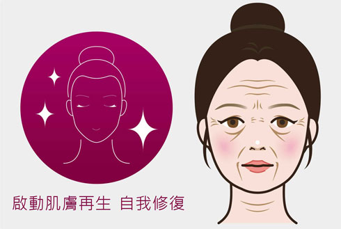 啟動肌膚再生自我修復→汰換老舊細胞→活化幹細胞